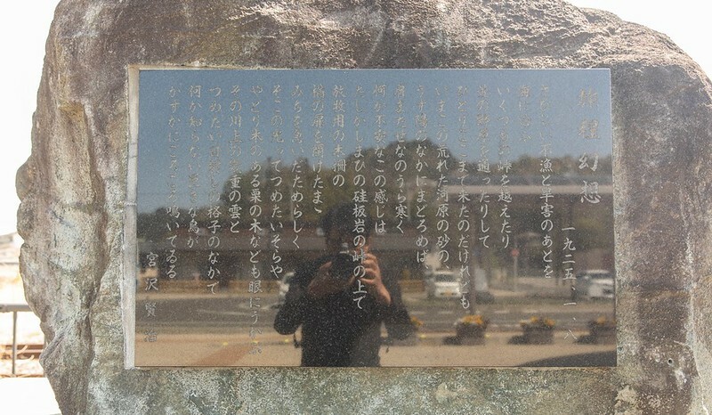 「宮澤賢治」台灣知道的人可能不多,最少不像「樹上春樹」那麼有名,但在日本其地位一點也不輸樹上,特別是在岩手根本是神般的存在,有關這位日本國民作家的故事,有興趣的不妨google一下,或是找找《銀河鐵道之父》這部由役所廣司、菅田將暉雙影帝加上在小海女爆紅的「森七菜」主演的電影。順便說一下「宮澤賢治」所寫的「鐵河鐵道」小說,至今仍是絕大多數日本小說、漫畫、動畫故事中銀河的藍圖,對日本人的銀河創作其影響不可謂不深。他曾在岩手、乃至於東日本不少也方遊學過,並留下許多著名的詩句,而「大槌」也曾是他遊學的地上之一,有一點像大家比較熟知的「松尾芭蕉」。