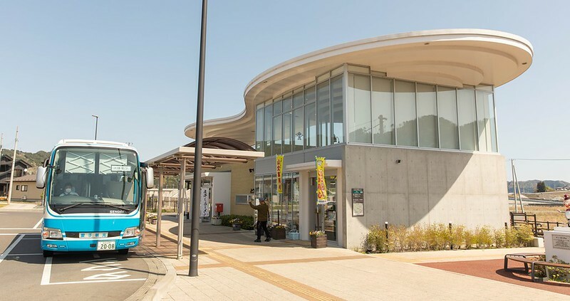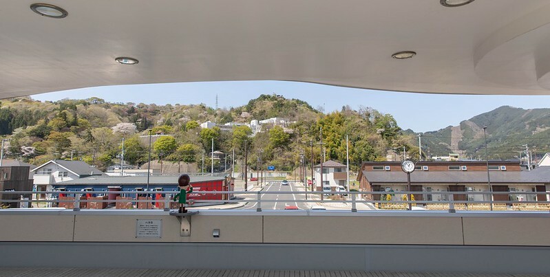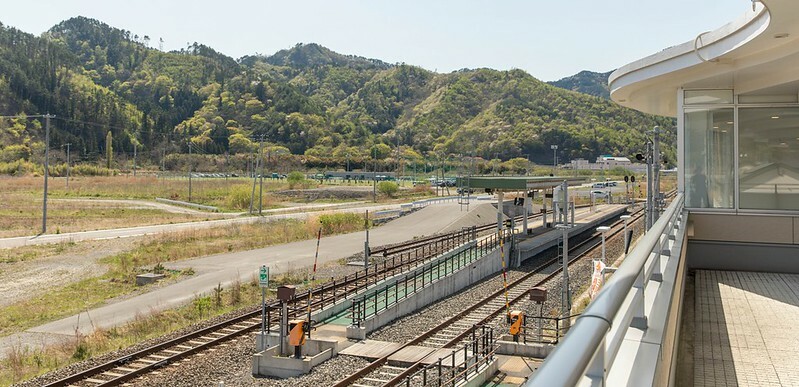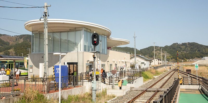 車站的二樓有一個胡蘆型的屋頂觀景台,像徵著居民、旅客登島,一面是重建的大槌町,另一面是三陸鐵道的鐵軌。當地的居民說,直到現在登上車站頂,都會想起當年整個被泡在海嘯裡的大槌町中心。
