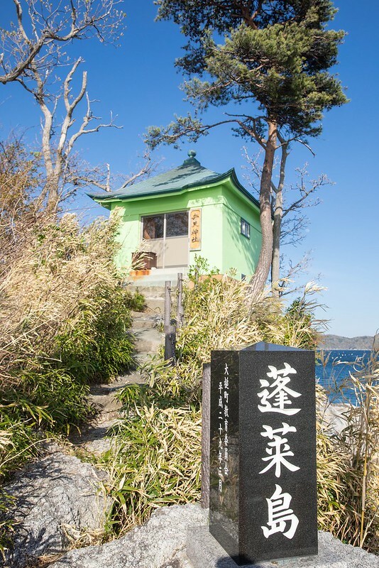 記得第一次到大槌時,我問當地觀光局的朋友,大槌最有名的景點是哪裡,於是他們帶我來這座週長約200m的小島,因其顯著特徵是形狀像葫蘆,由一大一小兩座小山組成故有葫蘆之稱,也日大槌人將之視為第一景點,故大槌又有「胡蘆島之町」的稱號。不過,江戶時代這裡被稱為「珊瑚島」,直到1738年盛岡藩主南部俊志在巡邏時下令將其稱為「蓬萊島」。