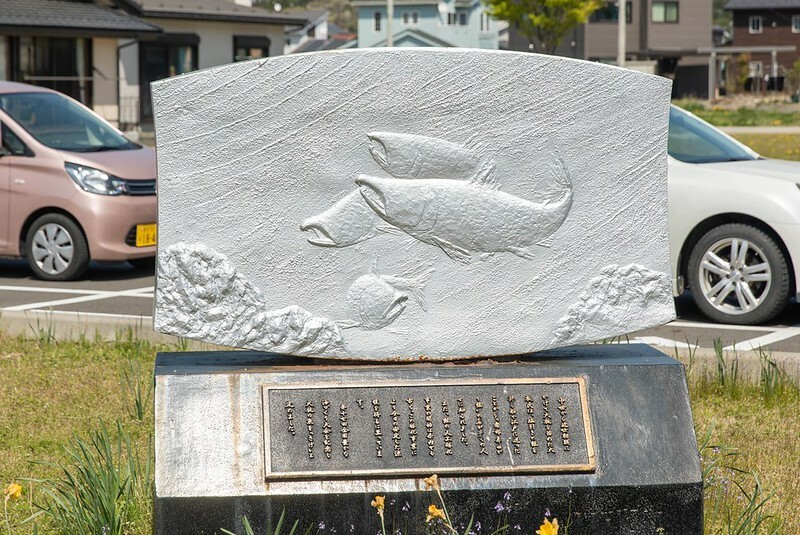 除了胡蘆島之町的別號外,大槌還有一個稱號是「三文魚之町」,主因是這裡曾是盛產「鮭魚」之地,就大槌奶奶的說法她小時候在鮭魚回流產卵時,只要走到大槌川邊就可以「撿」到一堆魚,一整年吃也吃不完的鮭魚....其數字化是一年「五噸」。那如此呢?我們目奶奶,她笑著伸出手掌,表示現在要以「匹」來論。故大槌町現在以養殖「銀鱒」取代天然鮭魚(日本銀鱒可以稱之為鮭魚)。如今除了大槌鮭魚外,幾年推廣的大槌鹿也頗受好評,而這樣大槌一新一舊的名物也是我們此行的重點,待之後就慢慢和大家分享。