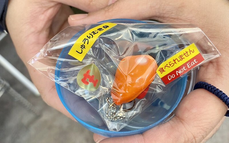 裡面的扭蛋都是以岩手、三陸、大槌的海洋生物,比方東北很有名的海鞘(ホヤ),當然也有大槌大大有名的「鮭魚」。