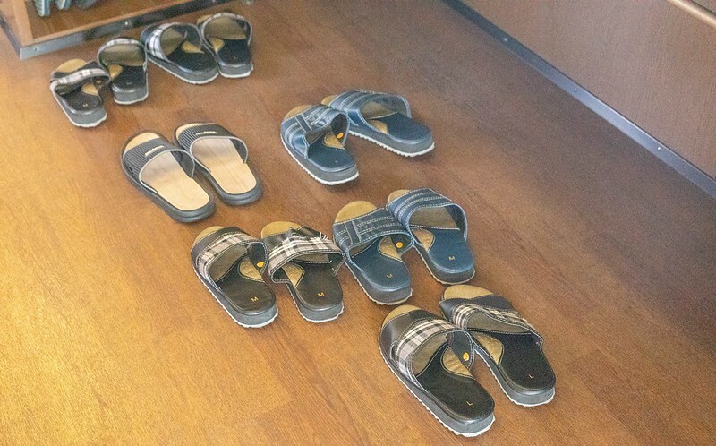 火車的地板是木質,所以要脫鞋才能進去,車箱內有拖鞋可以穿,兩旁的桌子是冬天提供暖氣的桌子,據說還有棉被可以蓋,難怪會叫「暖爐列車」(笑)。