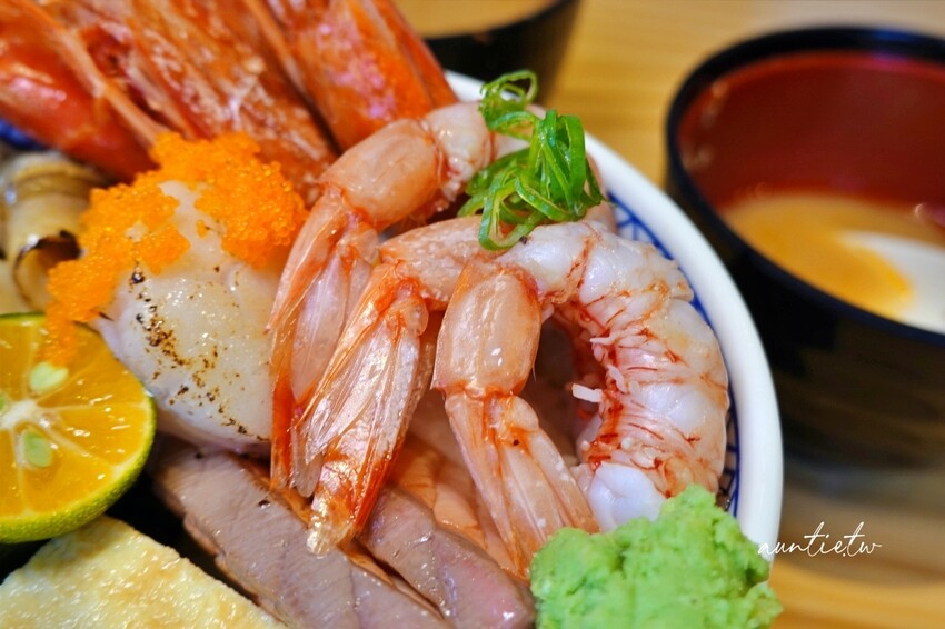 本來覺得飯量好像不夠,不過點丼飯或定食都有附贈免費的鮮魚味增湯,味增湯裡料多豐富,有蝦頭熬煮湯頭,還有不少鮭魚肉以及豆腐,味道實在很鮮美,喝上一碗其實就蠻飽的。