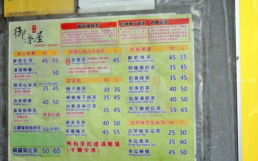 這應該不用我提醒,大家都知道嘉義必喝的就是葡萄柚綠茶吧!?元祖店是這家『知更鳥巢 鮮果茶飲 』一樣價格比較大杯,建議+2顆酸梅不另加價。但把葡萄柚綠茶發揚更光大的人氣店其實是這家『御香屋』,因為比較小杯,一顆酸梅就很夠味,加上果肉也很多,所以酸甜濃郁超夠味,也更有人氣。