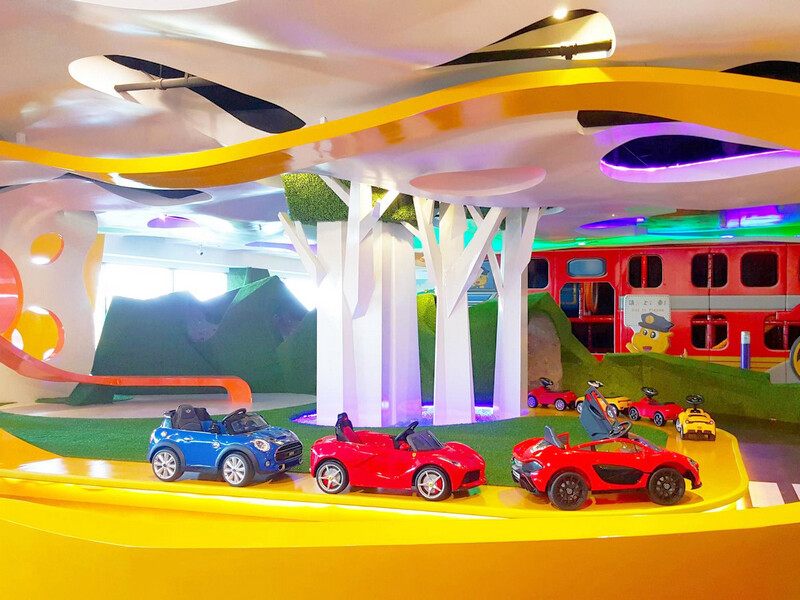 裏面有情境賽車道、叮叮車複合式遊戲球池、Dino攀岩場、家家酒等,設施非常豐富遊戲設施
