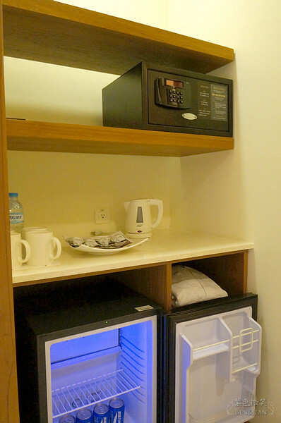 其他的東西也很周全,礦泉水、茶壺、馬克杯、小零食、茶包及咖啡包,冰箱還有運動飲料。