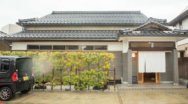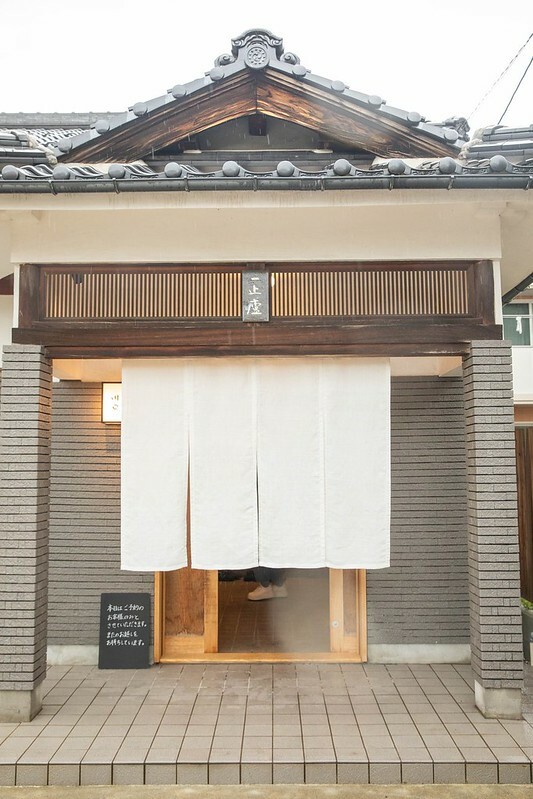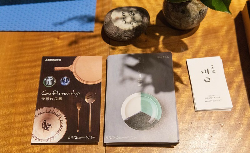 一止廬川口位於鳥取城下町周邊的住宅群裡不起眼、不對等的巷弄裡,看了google map害燒了兩三圈才找到;外觀有一點像高級日料的餐廳是明治時代的老屋改建,感覺就是一間很有品味的餐廳。餐廳老闆兼主廚從事和食料理多年,同時對於陶器皿、酒器情有獨鐘。