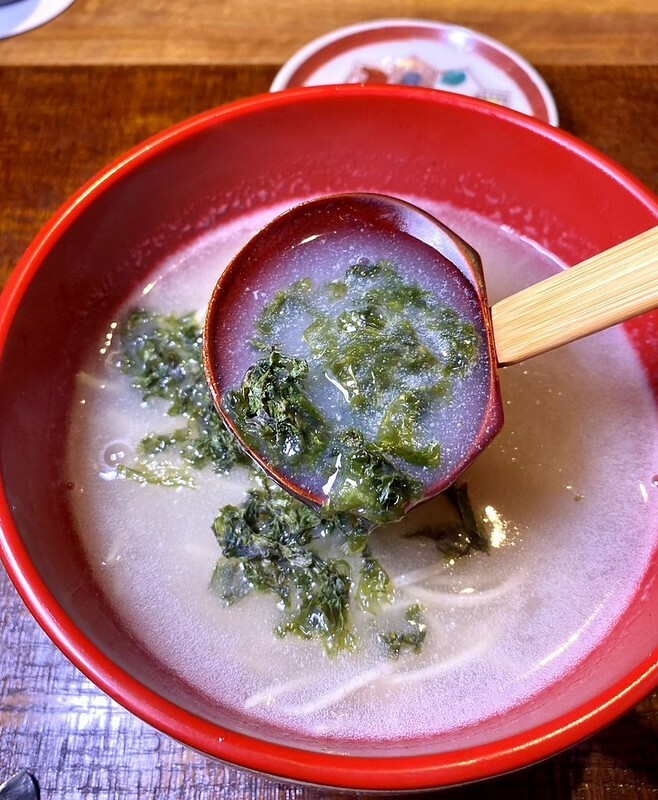 最後是第二次的そば,可以選沾汁或是湯,我選的是後者的湯,那煮そば的湯濃到化不開,增加了海苔絲增味,吃完了打了滿足的そば膈,居然有一股暖流在胃裡。這そば真是香甜得不得了,山陰果然是日本三大そば的故鄉。