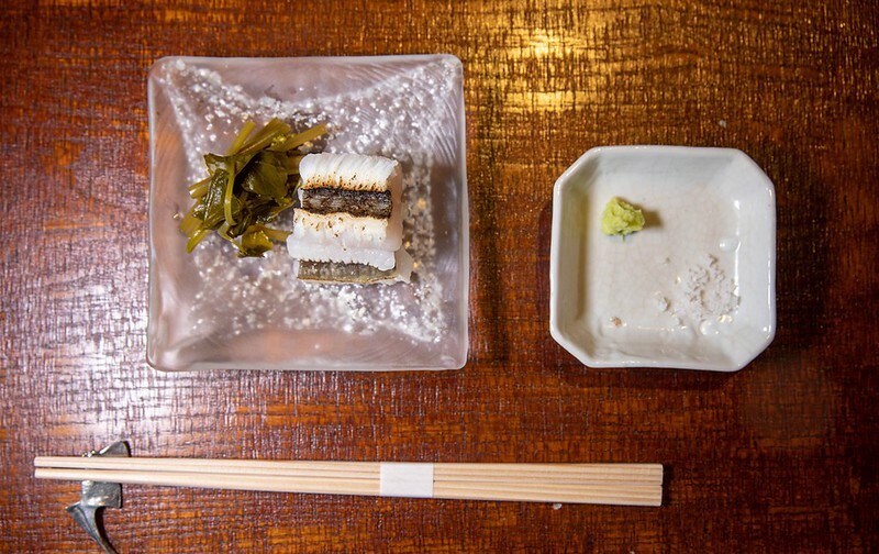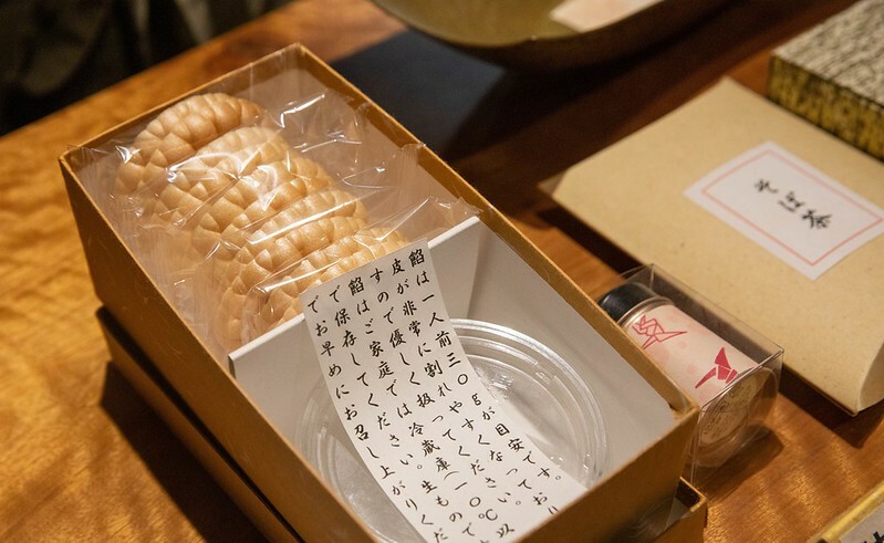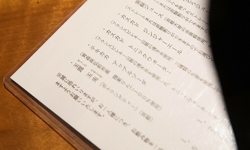 木質櫃檯上同樣有條不紊的放著文鎮、收銀器皿、照片般的dm和販賣的茶和最中。是說,一最早後來我買了一盒給大家嚐鮮,那最中皮酥脆的讓人印象深意,以前總不解為什麼日本會有專門賣最中皮的店,甚至不少超過百年,但當你越了解日本文化,越會發現他們一生懸命,一輩子只做一件事的職人精神著實讓人動容。當然,也包含今天要介紹的一止廬川口主廚