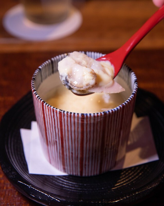 第一道是看么平凡,幾乎大小日本料理都能嚐到的茶碗蒸,但也就這一碗第一口就讓人折服,燙口的蛋液中滿是蛤蜊的鮮味,往下挖是半顆對剖的扇貝、肉條和茶碗蒸常見的食材,我放下空碗的同時,聽到團員此起彼落的「好好吃」之聲。