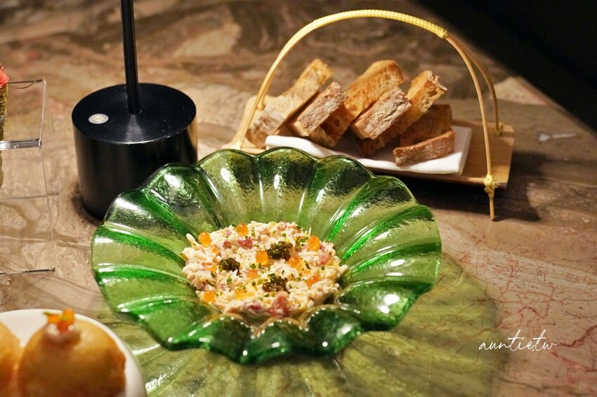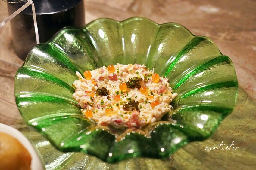 可以抹在麵包當成抹醬的蟹肉沙拉,蟹肉的香氣非常濃郁,搭配鮭魚卵與魚子醬提味,豐富的海鮮的鮮味度拉到最高。