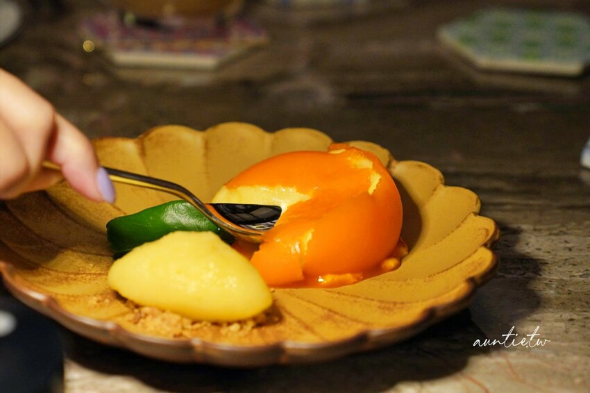 超級可愛的柑橘球,吃的時候再用湯匙將柑橘球敲開,沒想到柑橘球是像果凍般軟Q軟Q的,裡頭包著冰淇淋,還可以搭配一旁的柚子冰沙一起吃,清涼消暑是非常夏天的味道。
