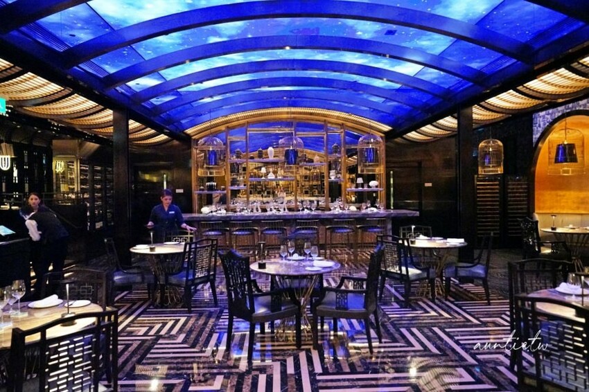 味賞位於老佛爺酒店三樓,從早餐就開始供應,餐廳金色的外觀十分華麗搶眼,內部的設計更是時尚感十足,以黑、白、金交錯的設計風格,天花板的LED銀幕,所呈現的景色就是老佛爺巴黎工作室看出去的景色,處處都可看出老佛爺的獨到的時尚美學,餐廳內部分非常好拍照,每個角落都能拍出時尚大片的感覺。