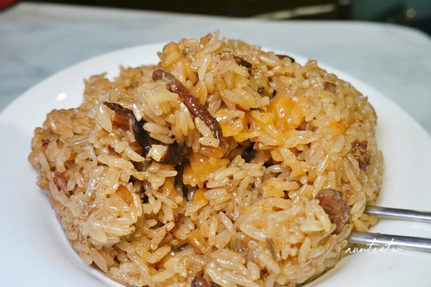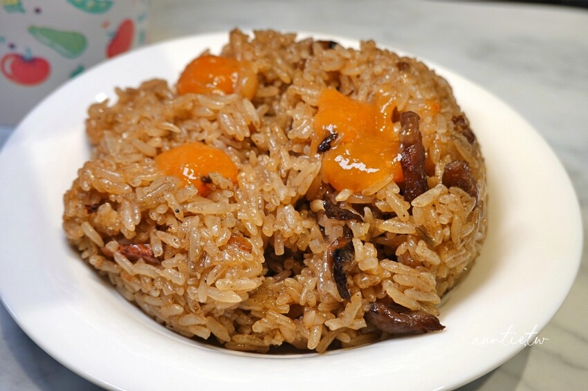 油飯裡加了香菇、豬肉,買回家後變涼了油飯口感會變Q,不會有油耗味,口味上比較清爽,屬於百吃不膩型的,加上甜辣醬還蠻好吃的,家裡有辣椒醬的話,加點辣會更好吃。
