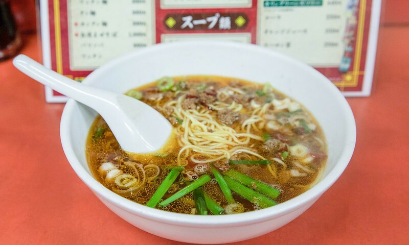 台湾ラーメン我跟五郎一樣點了中辣。是說,這風味的台湾ラーメン,我早前在採訪名古屋時也曾吃過2、3家,大抵上風味都差不多,主要是那辣味的肉燥,和台灣人可能會覺得有一點油、一點鹹的湯頭,配料方面除了蔥花外,通常也會有日本中華料理常見的韭菜。