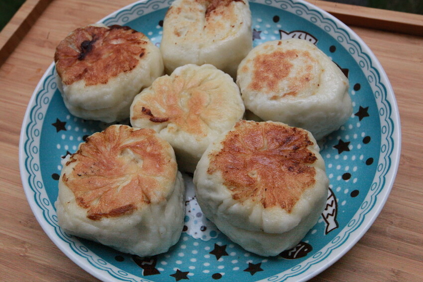 這水煎包表面煎到焦黃色。