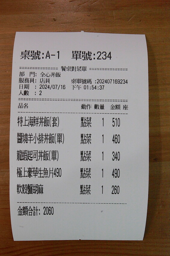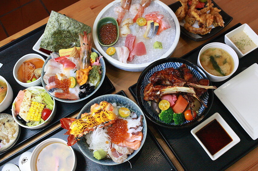 我們今天總共3人用餐就點特上海鮮丼飯400元+套餐110元、醬燒羊小排丼飯460元、龍蝦起司丼飯340元、極上豪華生魚片490元及軟殼蟹胡麻260元等,老實講最後我們3位大人卻吃不完。