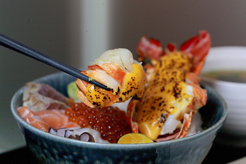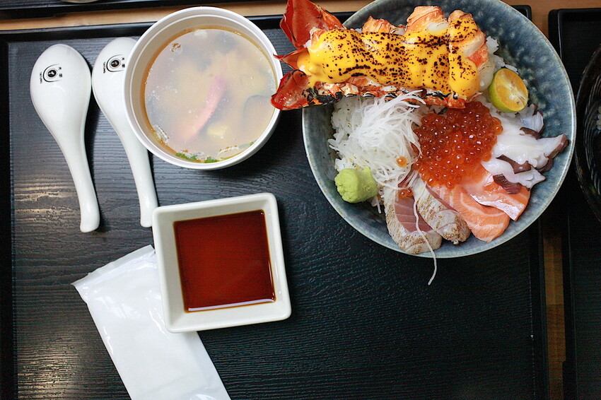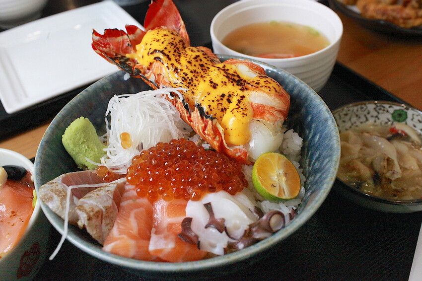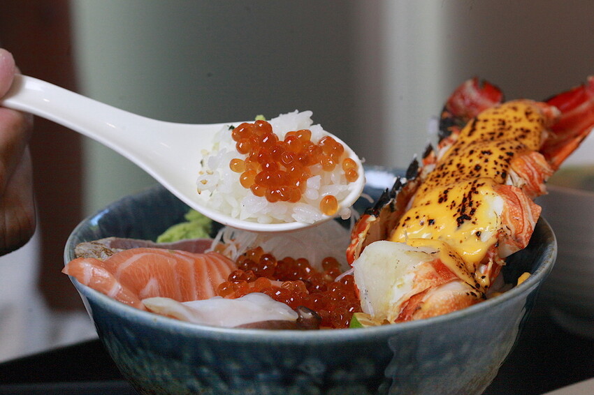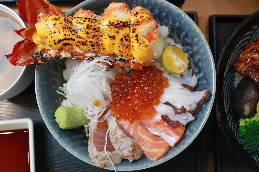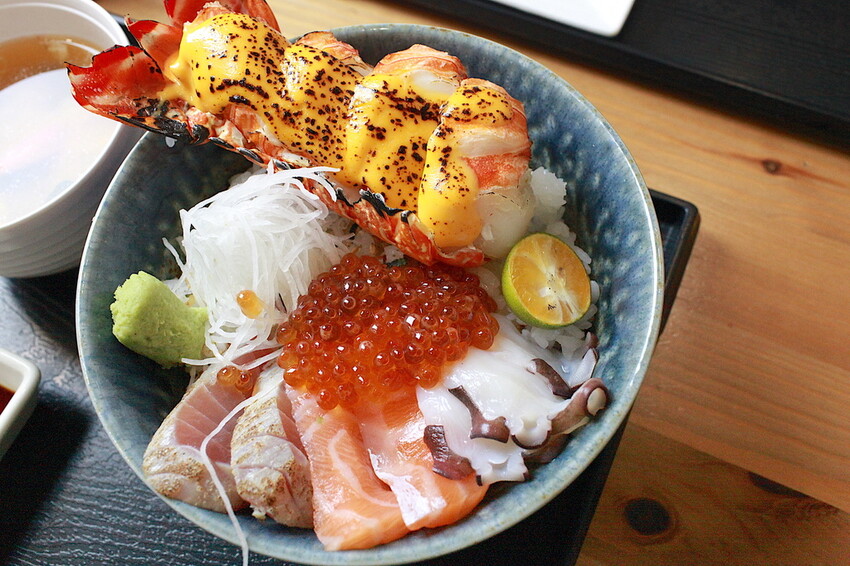 這龍蝦起司丼飯底部有滿滿醋飯,表面鋪上龍蝦、鮭魚、炙燒鰹魚、章魚、鮭魚卵…等等,這澎派生鮮絕對能滿足您的味蕾。