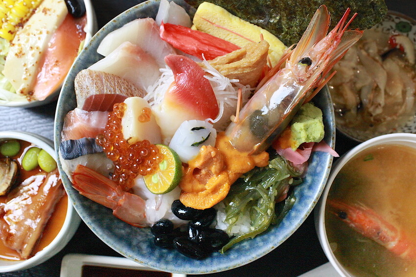 身為生食控小高就點這道特上海鮮丼飯,+110元竟然會附上沙拉、蒸蛋及小菜等,這麼超值小高我當然不會錯過。
