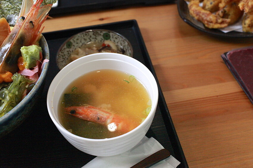 這碗味噌湯還有一隻鮮甜白蝦,湯頭很道地日式風味濃郁超好喝