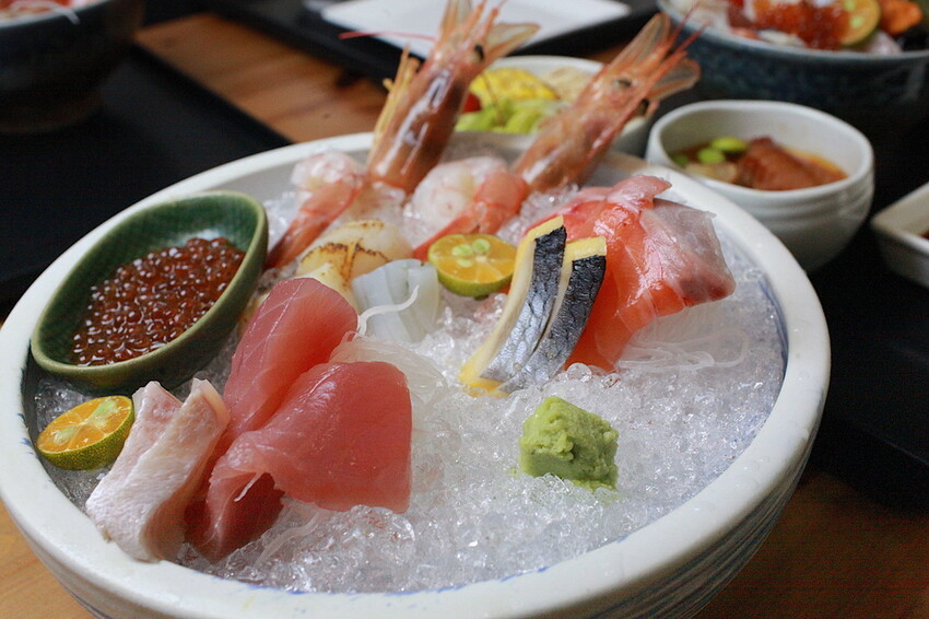 這鮭魚、鮪魚、海鱺、鯡魚、章魚、干貝..等都嚴選過,這些生食都是很鮮甜非常好吃