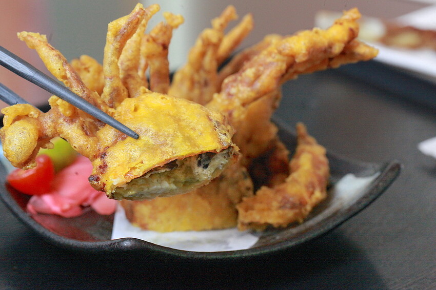 這軟殼蟹整隻都可以吃麵衣酥脆,蟹肉鮮甜不油膩真好吃