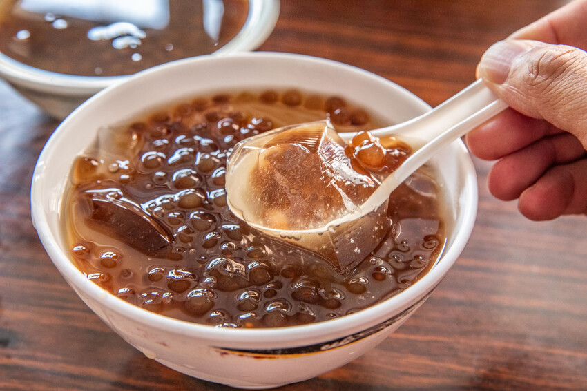 基本的粉圓冰,呈現琥珀色澤,我們點微糖微冰,粉圓本身就有甜,點微糖剛好,而且南部的甜身為北部人的我們正常甜不敢領教,糖水有紅糖的香氣,冰冰涼涼加上滑Q的粉圓,涮嘴!