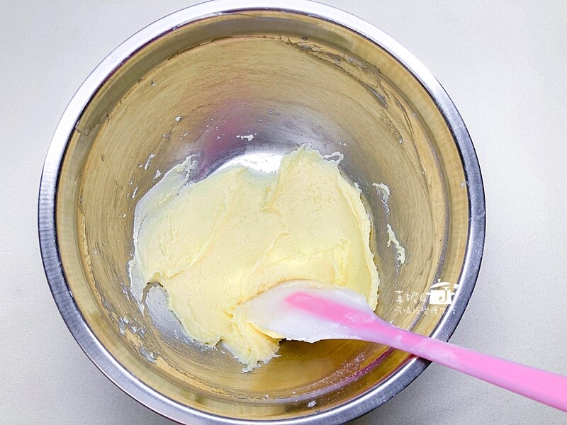 這裡用糖粉是因為顆粒細容易融入奶油裡,若沒有糖粉就用砂糖,只是要多花些手勁攪拌到沒有顆粒