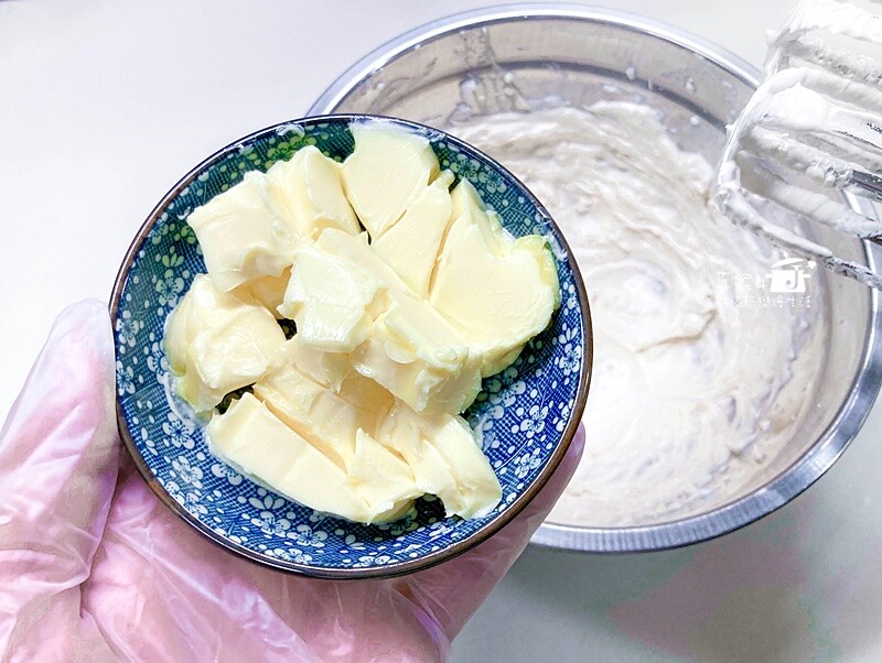 1.奶油要先放在室溫軟化到用手或刮刀能輕鬆壓切的狀態,依序加入糖粉和牛奶”分段拌勻”
