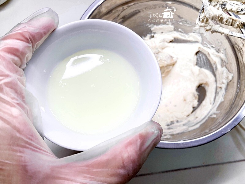 7)最後再加入檸檬汁,充分攪拌混合到滑順後裝入擠花袋備用