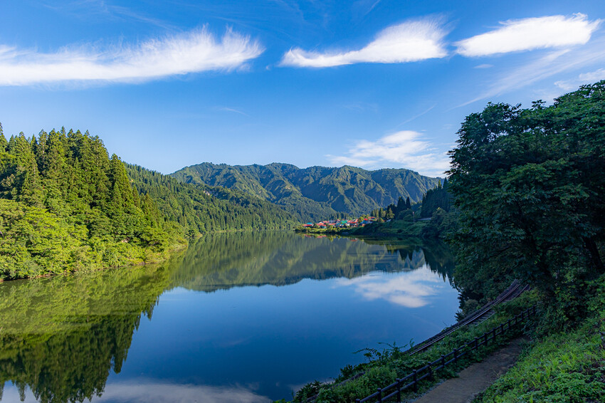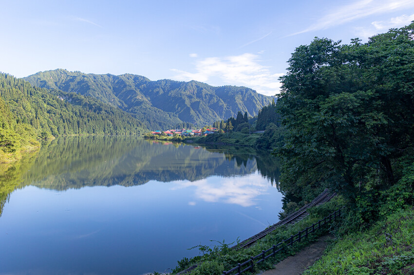 大志集落位在福島的金山町,這幾年因為很多攝影愛好者前來拍只見線,帶動很多人會來此觀光,一個與世無爭的寧靜小鎮,四季分明的色彩點綴這個聚落,很多人都是來拍攝冬季的景色,其實夏天來欣賞一片翠綠的大志集落也是超美喔!