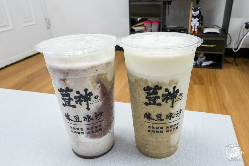 《荳神綠豆沙》招牌就是雙色牛奶冰沙拉,這杯是紅豆冰沙加綠豆冰沙的組合,要不要加牛奶就看個人喜好了,喜歡喝起來滑順點又有奶香的話可以加!喝起來的紅豆香氣與綠豆香氣都表現很不錯,不會因為混在一起,而喝不出來~(買的當天蛇丸剛好在介紹逢甲夜市,有好幾間逢甲美食阿偉都介紹過😂