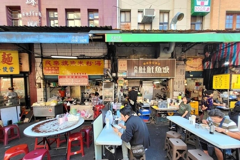 ↓永樂市場對面,三攤歷史悠久、連國外遊客都必朝聖的【民樂旗魚米粉湯】、【永樂台南𩵚魠魚羹】、【永樂臭豆腐/涼麵】,最後者上次年貨大街吃過了,今天就選中間的𩵚魠魚羹吧!
