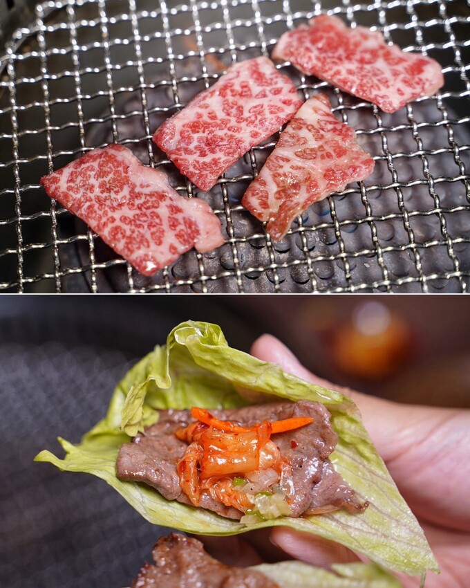 「美國牛小排」油花美、肉質又鮮嫩,吃起來沒有和牛般的油膩感,是我最喜歡的部位之一。「澳洲和牛內橫隔膜」略帶口感,肉香四溢,搭配蒜片吃超對味!