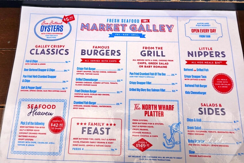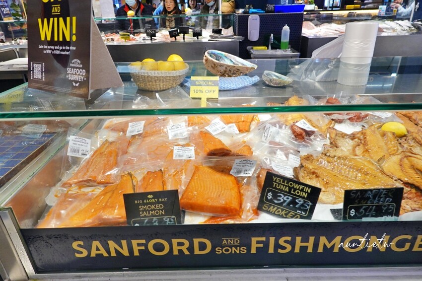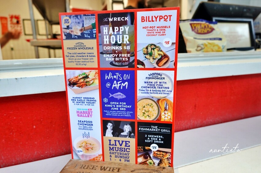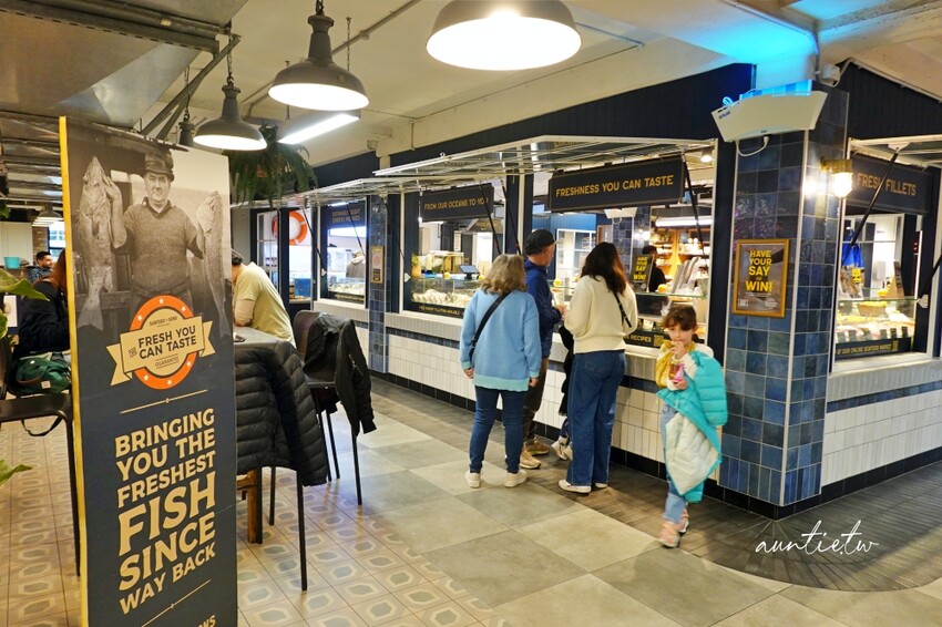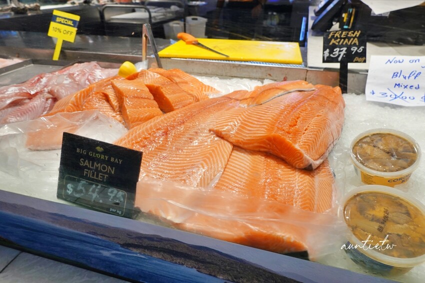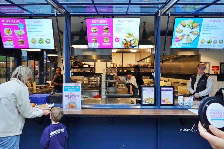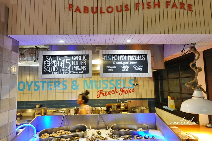 奧克蘭魚市場的環境很乾淨,跟傳統濕濕滑滑的魚市場不一樣,感覺比較像是美食街的形式,除了有賣新鮮海鮮外,還有酒吧、炸物、漢堡等餐飲,看了一下官網,這個魚市場是1904年創立的,是重新整理改建過,感覺起來非常新穎。