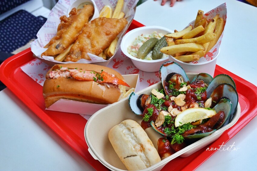 Lobster & Tap 龍蝦堡專賣店,使用的加拿大的野生龍蝦,現點現做,龍蝦堡內加了一點美乃滋以及香草,麵包是用奶油烤過的,味道很香,套餐則是多了薯條、生菜捲以及酸黃瓜,吃起來其實就很像紐約的Luke’s Lobster,只是奶油味少了點。