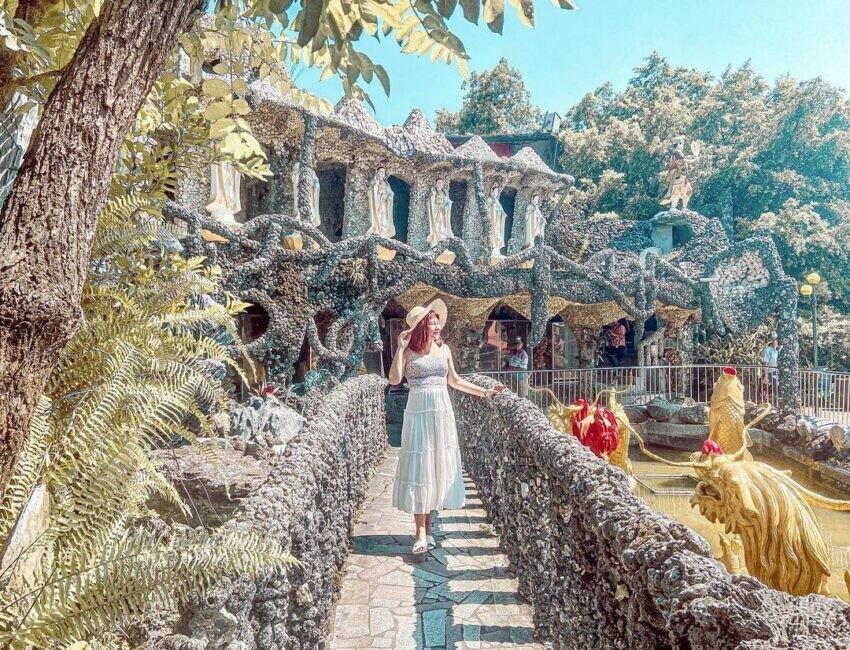 在田寮有一間很特別的石頭廟,整座廟是由不同大小的石頭、貝殼珊瑚礁一顆一顆堆疊而成的,夏天走在這非常通風涼爽,就像是到了海底龍宮一樣壯觀。石頭廟位於慈玄聖天宮的後殿,從屋頂到柱子都是手工黏貼上去的,而且製作的時候是沒有設計圖的,可見當時有多費工,不過最後才能有這麼驚人的成果。