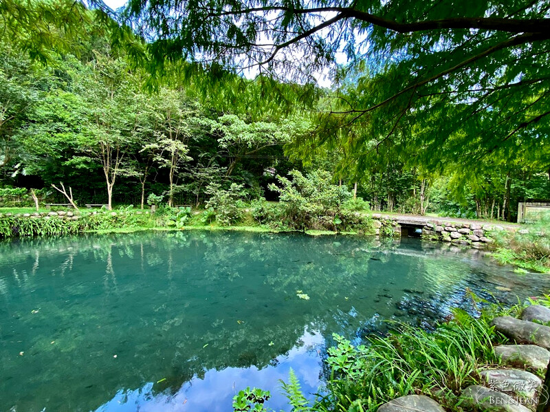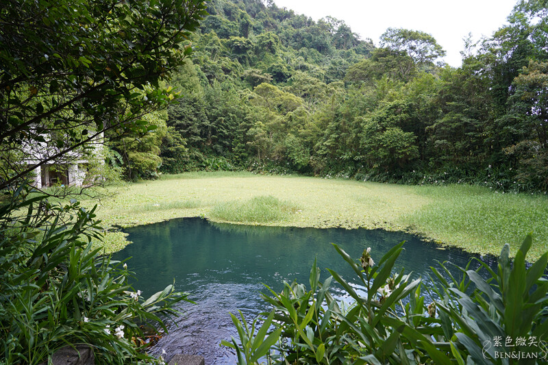一旁還有長滿水草的水池,依山傍水,景色宜人