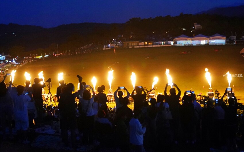 熱氣球團隊以噴火器繞場接受歡呼,並由台灣知名十鼓擊樂團及連續13年榮獲全國學生舞蹈比賽特優的台東東商原舞團帶來的精彩開場,炒熱現場氣氛。