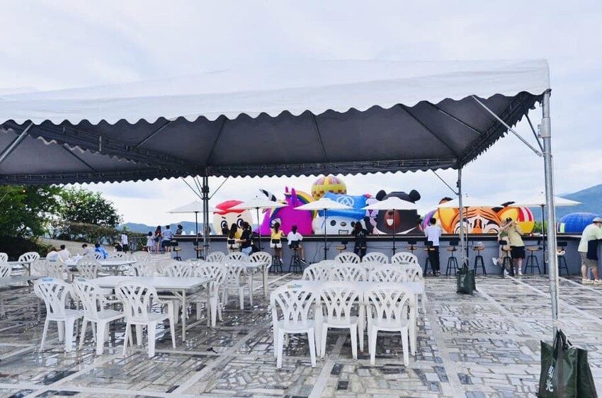 這次因為在地主辦單位的安排才知道原來有最佳賞球頂樓平台可以預約,不用人擠人,雖然不在搖滾區位置,但肯定會是看光雕無人機秀的最佳地點,眺高望遠,還有餐點跟廁所提供,室內還有冷氣可以吹,差別就在請一定要事先預約,搶得先機者先得座位。