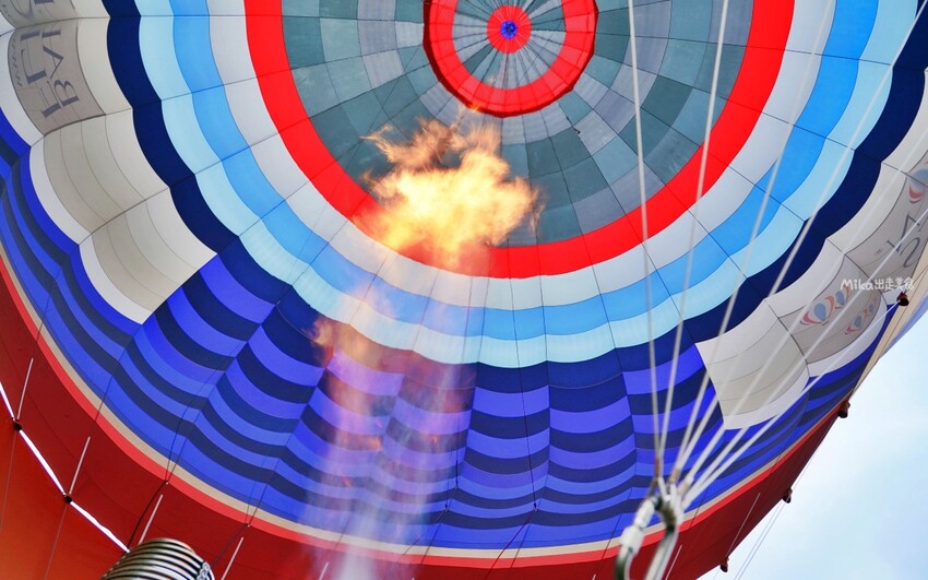 上熱氣球後,可以感受那股熱氣,一直噴火。