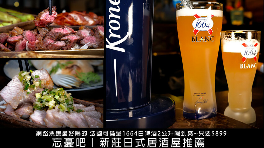 忘憂吧|新莊居酒屋餐酒館,整柱1664白啤酒暢飲!烤物+啤酒的超強美食宵夜推薦餐廳