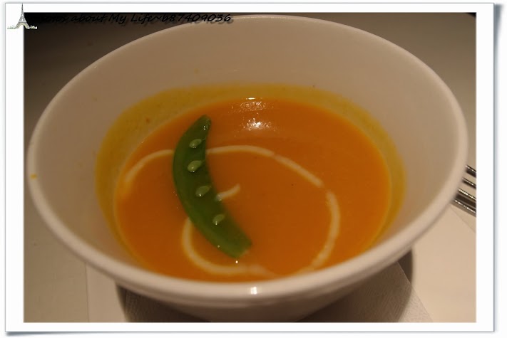而且還喝得到南瓜/地瓜打成泥後的纖維口感 雖然是濃湯不過挺清爽的 剛好跟上道湯品相反(笑)