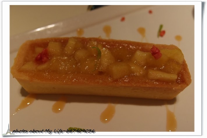 桂花凍才吃1口立刻轉吃阿爸點的蘋果派 阿爸不愛它帶有檸檬的酸味 當然由愛吃酸的我解決啦(笑)