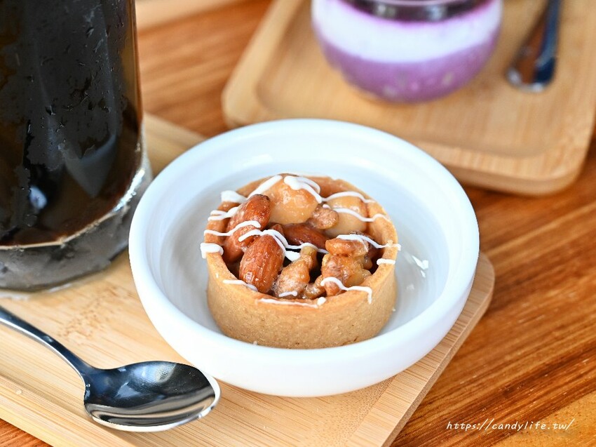 越滿樓越式創意料理的手作堅果塔糖糖也很喜歡,塔皮相當酥脆,裡頭堅果份量也很實在,有杏仁、夏威夷豆及核桃,口感清脆,帶著迷人的堅果香氣,微甜不膩,口味不輸甜點專賣店