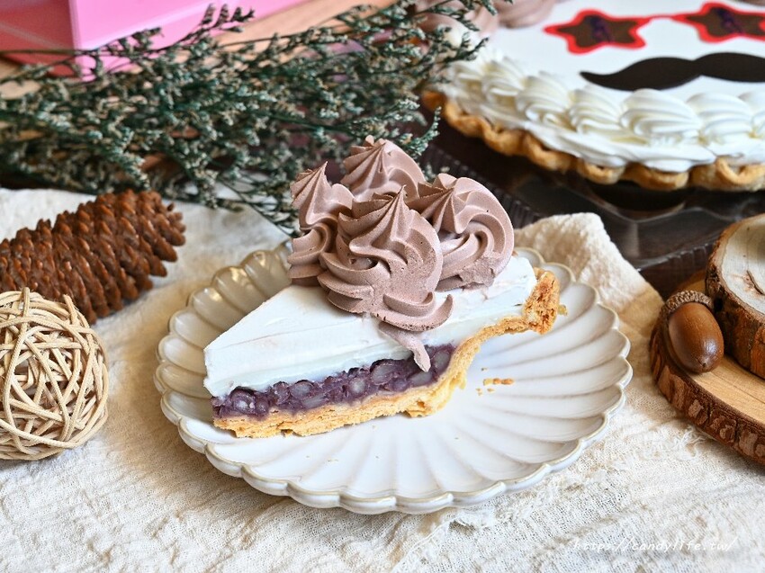 喜歡芋頭也喜歡紅豆的朋友一定會愛上薔薇派這款夢幻紫芋!上頭頂著三顆新鮮葡萄,搭配雪白輕盈的鮮奶油,再刨上白巧克力點綴,內餡是微甜不膩的芋泥餡搭配飽滿紅豆粒,加上手工酥脆派皮,好吃不膩口,層次超豐富