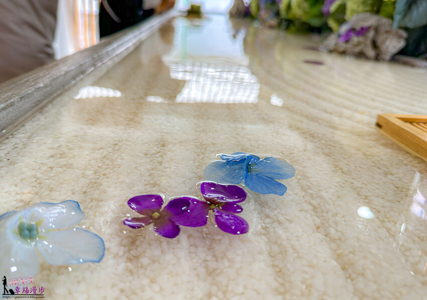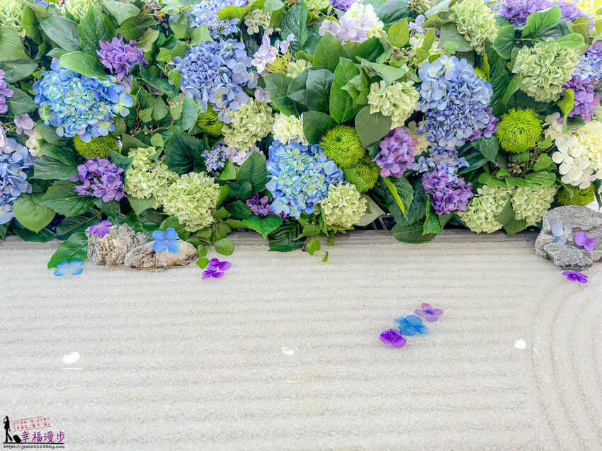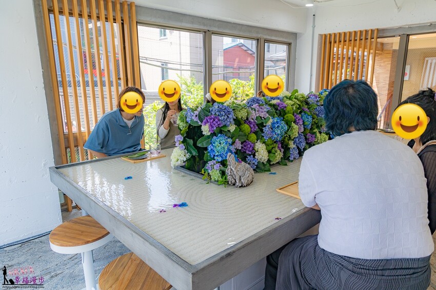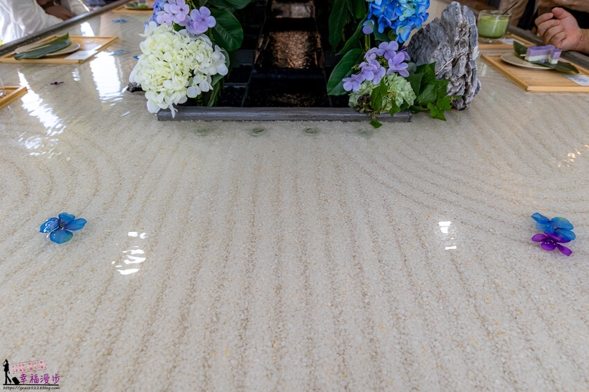 用餐區就是這個枯山水桌台,桌台的正中央是季節的紫陽花超美的。