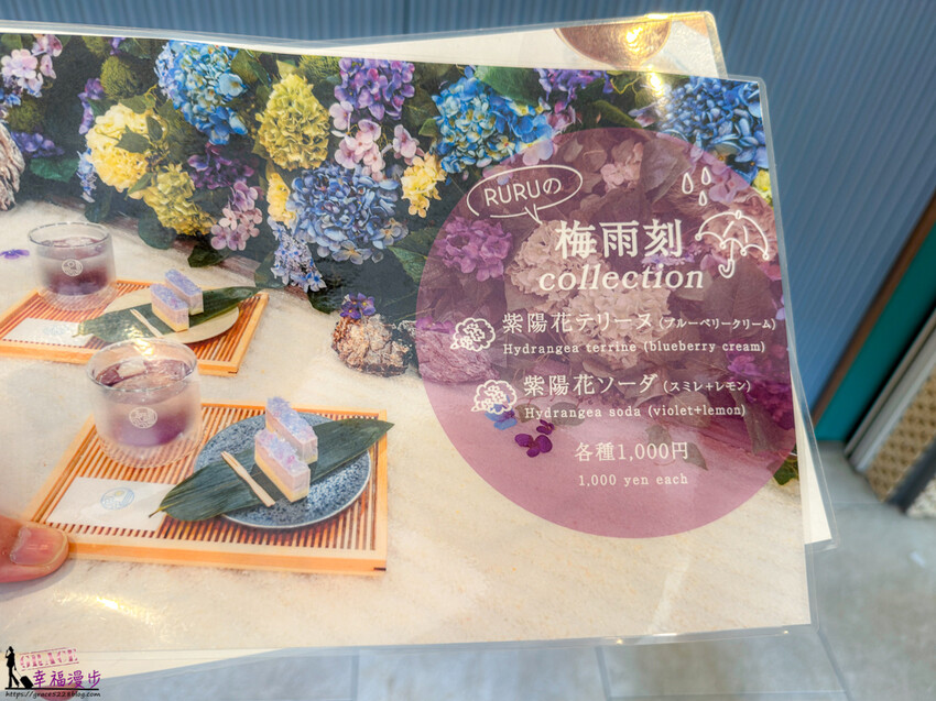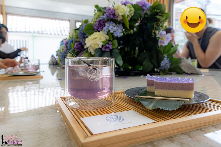 季節性的夢幻甜品,有著紫陽花氣泡飲和紫陽花羊羹,淡淡的紫色相當漂亮。