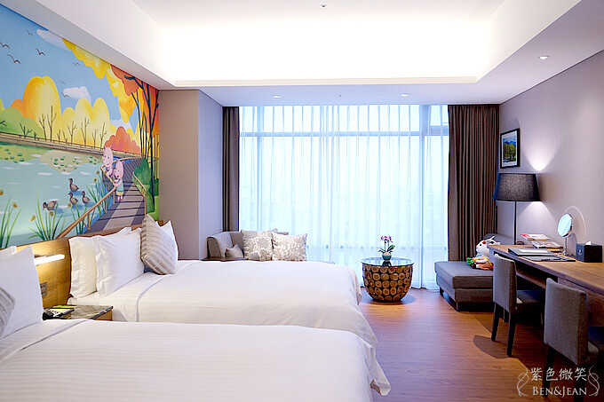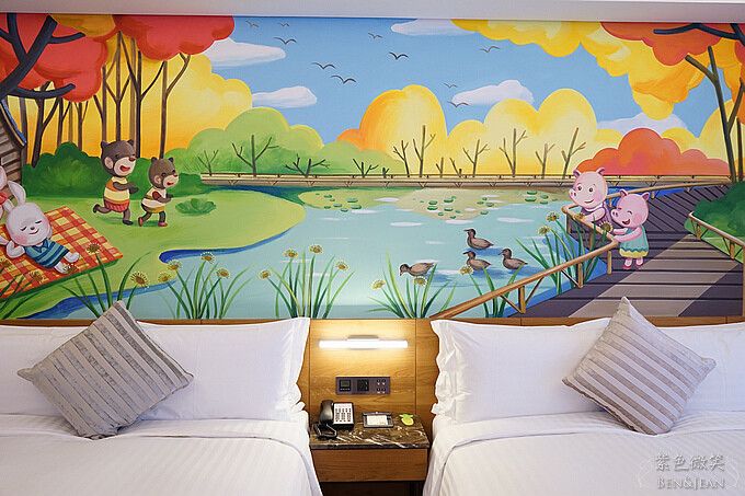 宜蘭親子飯店推推薦》「悅川酒店」!這裏被稱為是宜蘭小蘭城晶英酒店的親子空間還不錯玩哦,空間寬敞明亮,像是百玩不膩的積木、悅川ㄇㄚˋㄇㄚˋ號小火車、DIY活動,酒店有濃濃的書香味兒,一樓的空間、每個樓層~甚至房間內都有隨手可得的書本,書籍內容包羅萬象、多元又豐富,我們入住的客房裏還有店內吉祥物、暢遊宜蘭在地的可愛壁畫呢!