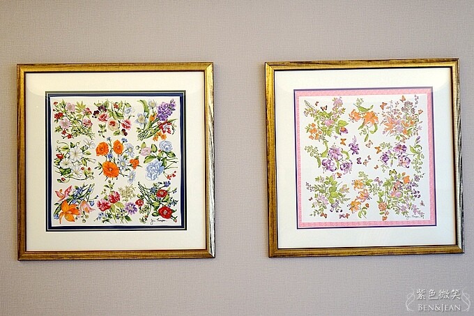 原來這牆上的掛畫也是有玄機的,這是老板私藏的絲巾,沒想到將它表框還滿像一幅美麗的畫作